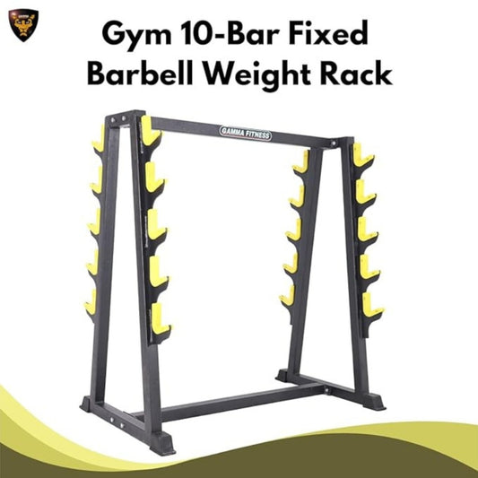 GAMMA FITNESS Gym 10-Bar Fixed Barbell Weight Rack - Heavy-Duty Storage Holder for Straight & EZ Curl Pre-Weighted Bars BR-401